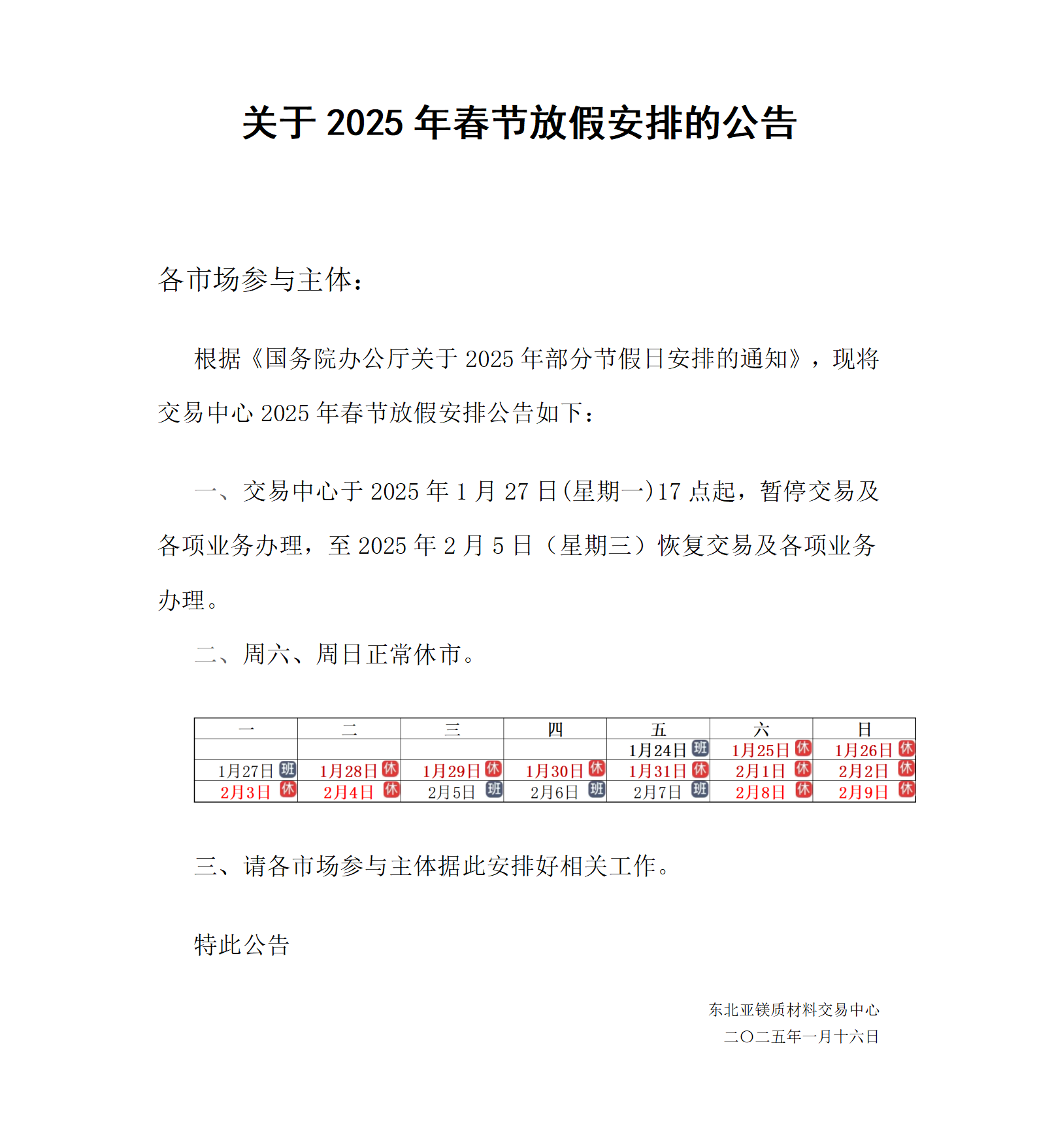 關(guān)于春節(jié)放假安排的通知