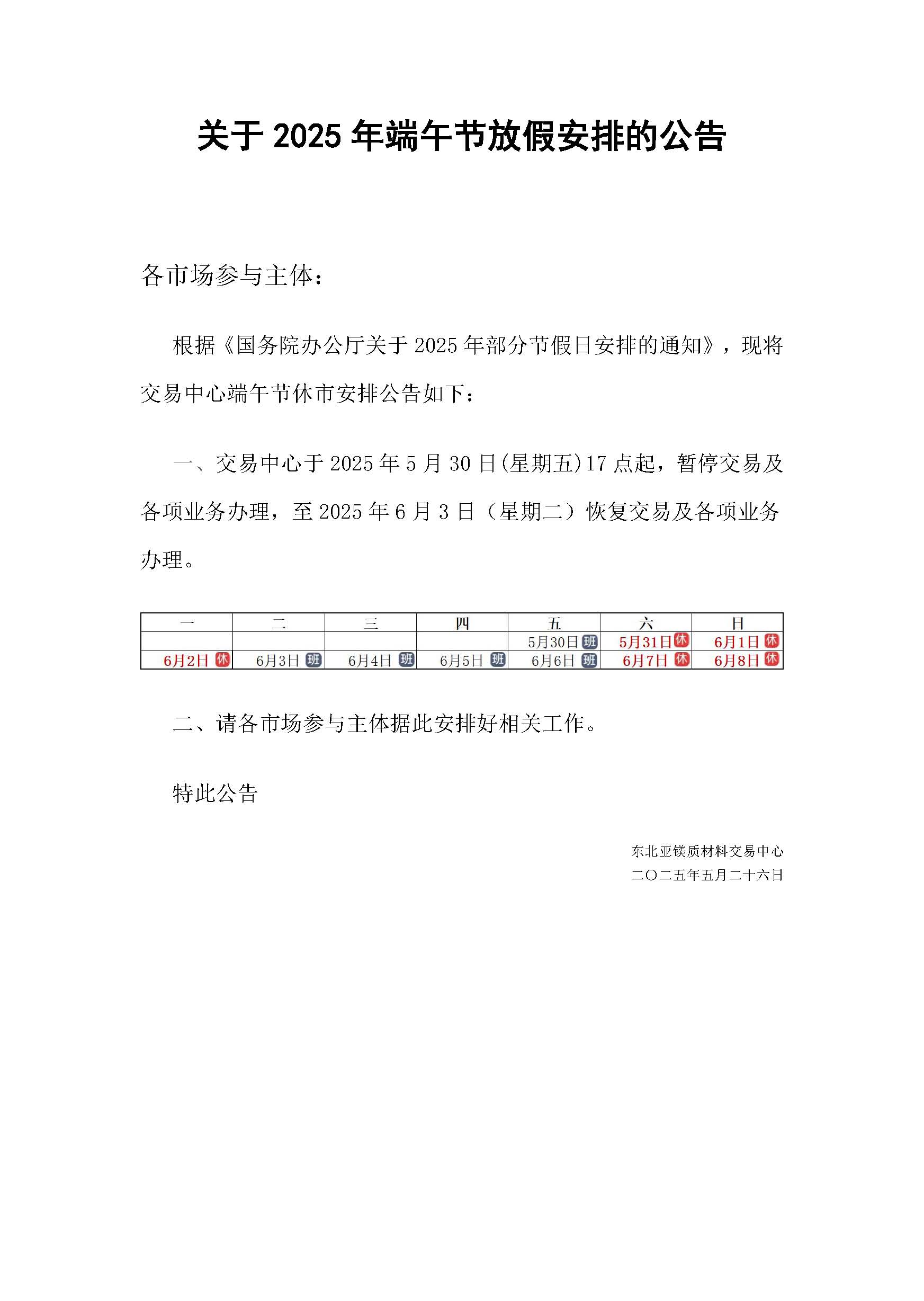 關于2025年端午節(jié)放假安排的公告